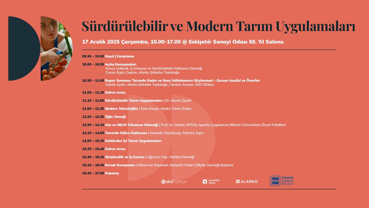 17 Aralık 2025 Çarşamba günü, 10.00–17.00 saatleri arasında Eskişehir Sanayi Odası’nda gerçekleşecek etkinlikte; tarımda kadın ve genç istihdamının güçlendirilmesi, sürdürülebilir tarım uygulamalarından hibrit tohum teknolojilerine, gübre kullanımı ve iyi tarım uygulamalarına kadar birçok önemli başlık, alanında uzman isimler tarafından ele alınacaktır.